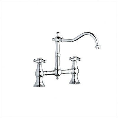 20128 / 18733+000 Finish: Chrome Pictured in chrome, handles not included by default Add style and class to your kitchen with this victorian inspired kitchen faucet by Grohe. Part of the Bridgeford Collection, this faucet is sure to remind one of the golden age of faucets with it's classic design. Choose a compatible set of handles to customize your faucet and one of three finishes to match your decor. Features: -Bridgeford collection -Bridge collection -Available in chrome, brushed nickel or oil rubbed bronze -9 3/4'' tubular swing spout -Solid brass construction -GROHE SilkMove ceramic cartridges -Two hole installation -1/2'' IPS inlets -11'' spout height -7 5/16'' aerator clearance -2 3/16'' maximum deck thickness -Sold without handles. Shown with Geneva cross handles -Flow rate: 2.2 gpm at 45 psi, 2.5 gpm at 80 psi Handle Features: -Available in chrome, brushed nickel, oil rubbed bronze, satin nickel, chrome/polished brass, polished brass and satin nickel/polished brass -Sold in pairs -Cross handles ...Read more Details